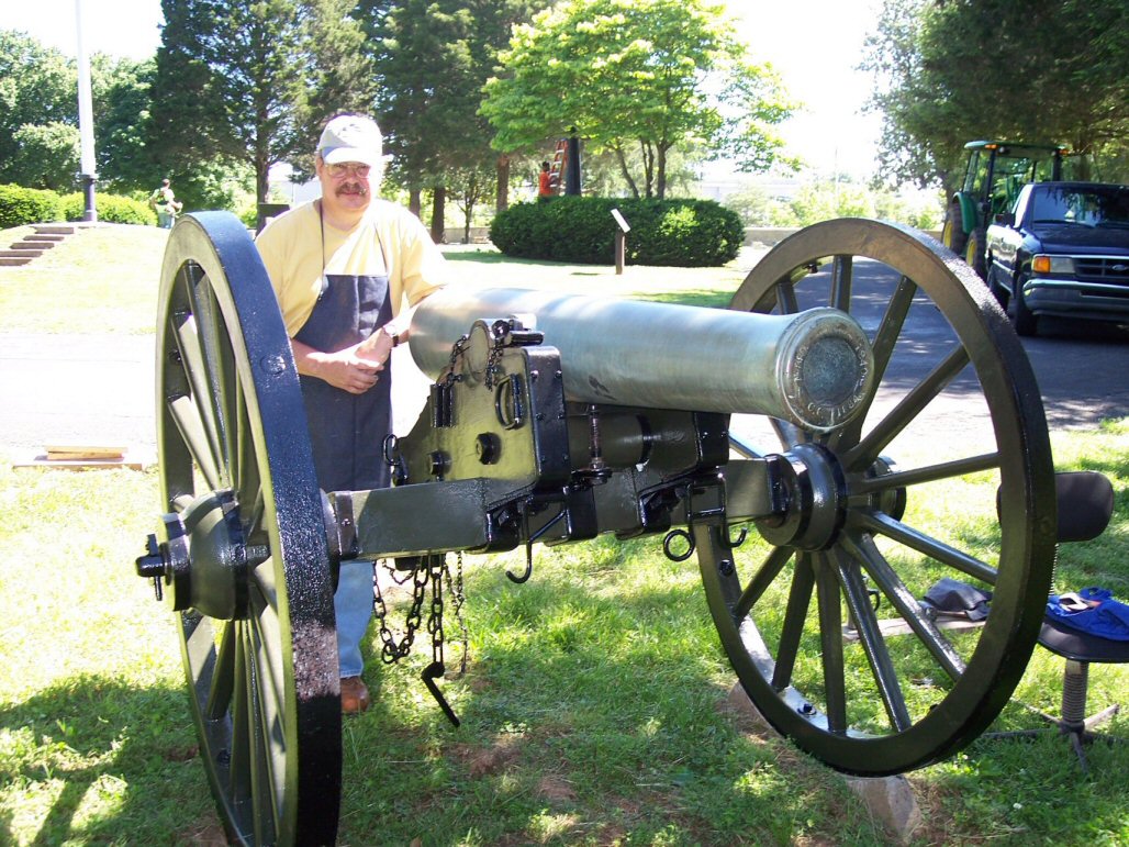 Brother Dave Du Brucq, Jr. Vice Commander of Fort Donelson Camp 62, is shown with a 12 pounder Napoleon gun as he prepares to put the finishing touches on the piece restored for the Stones River National Battlefield Park in Murfreesboro, Tennessee.